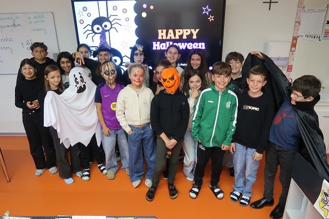 Diese Woche wurde unser Klassenzimmer in eine schaurig-schöne Gruselwelt verwandelt! An Almas Geburtstag kamen die Kinder der 1ab verkleidet als Vampire, Geister, Hexen und sogar als leuchtende Kürbisse – ein echtes Fest der Fantasie und Kreativität!