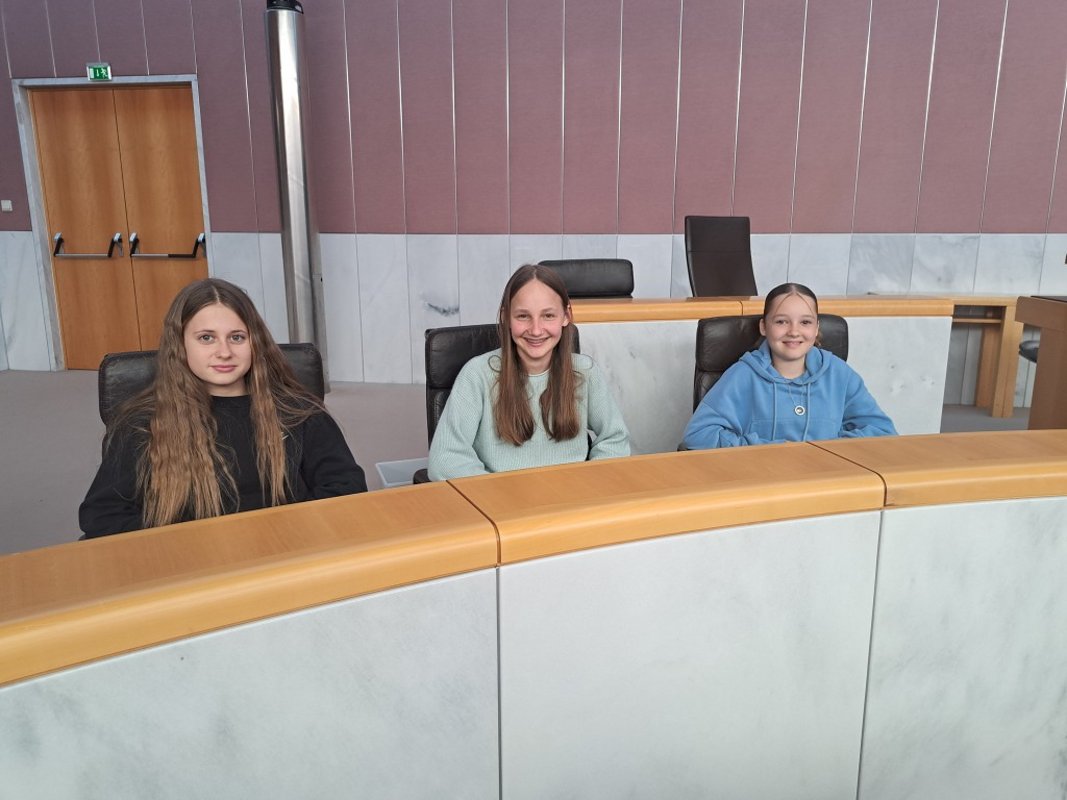 Es bot sich zudem die Möglichkeit, einmal im Sitzungssaal des Vorarlberger Landtags Platz zu nehmen und über aktuelle Schul- und Gemeindethemen zu sprechen. Ganz Mutige trauten sich sogar an das Rednerpult, um wichtige Anliegen anzubringen.