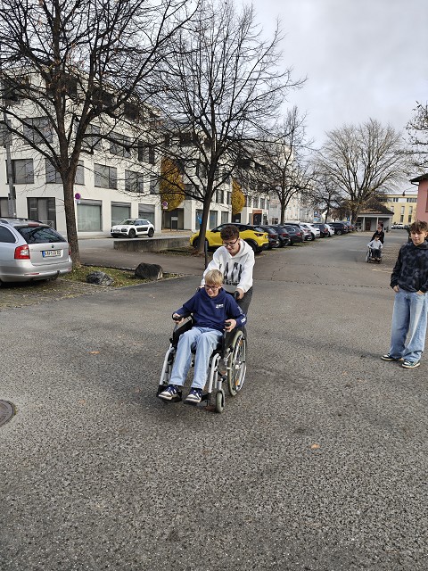 Phillip absolviert gerade die Schule für Sozialbetreuungsberufe (SOB) in Bregenz. Hier erhielten die Jungen detaillierte Informationen über die Ausbildung und die vielfältigen Tätigkeiten in diesem Bereich. Die Schüler probierten den Umgang mit Krücken aus und testeten ihre Geschicklichkeit beim Fahren mit Rollstühlen. Zudem konnten sie sich gegenseitig den Blutdruck messen, dieser war durch die Anstrengung mit Krücken und Rollstuhlfahren bei manchen erhöht.