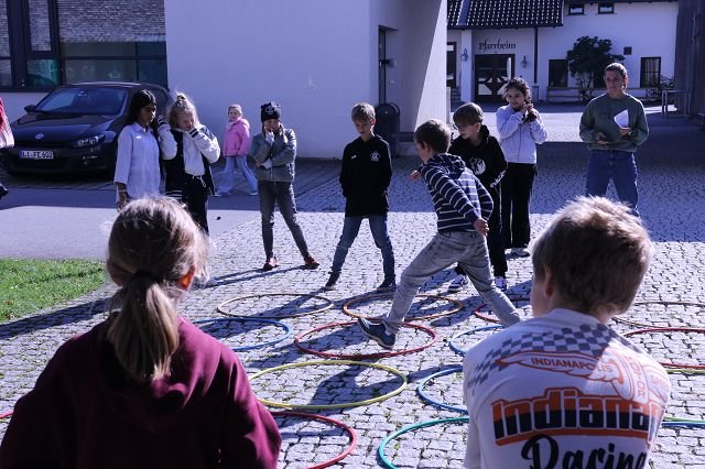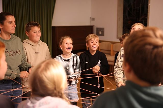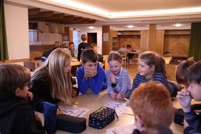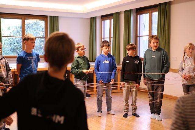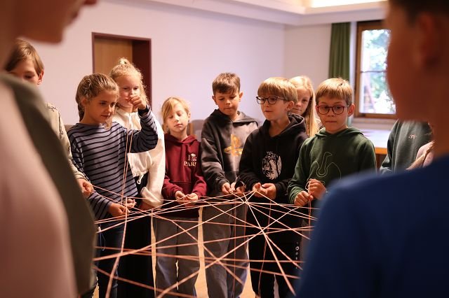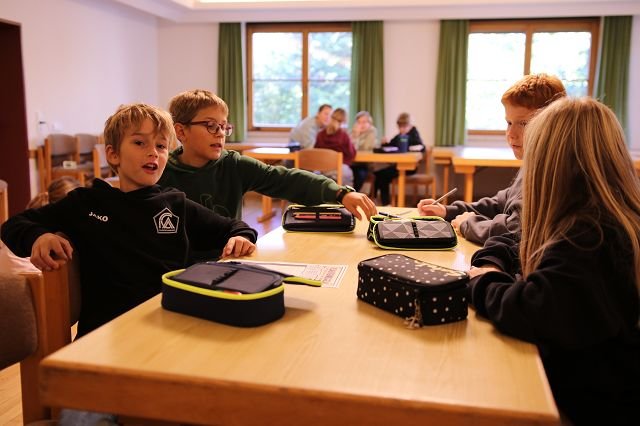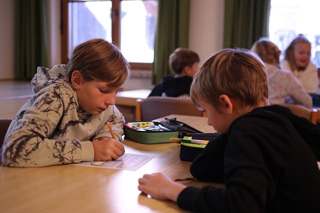 Die Klasse 1a verbrachte den Vormittag im gemütlichen Pfadiheim, während die 1b zuerst im Mehrzweckraum und anschließend im Pfarrsaal zusammenkam. In beiden Gruppen standen klasseninterne Themen im Mittelpunkt: Die Kinder lernten sich besser kennen, erkundeten gemeinsam ihre neue Umgebung und stärkten spielerisch das Gemeinschaftsgefühl. Es wurde gemalt, erzählt und viel gelacht – ein schöner Auftakt für das kommende Schuljahr!