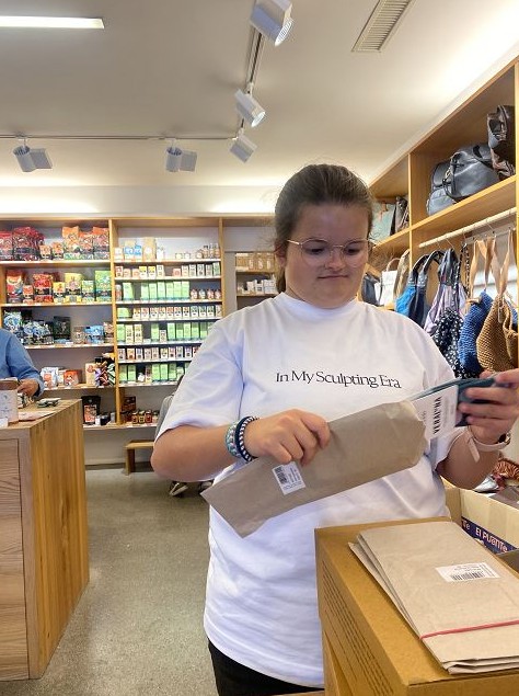 Im Herbst durfte ich im Weltladen Egg schnuppern. Ich habe verschiedene Waren ausgepackt und in Regale eingeräumt. Auch Kaffee habe ich gemacht. Ich bin das erste Mal alleine Bus gefahren.