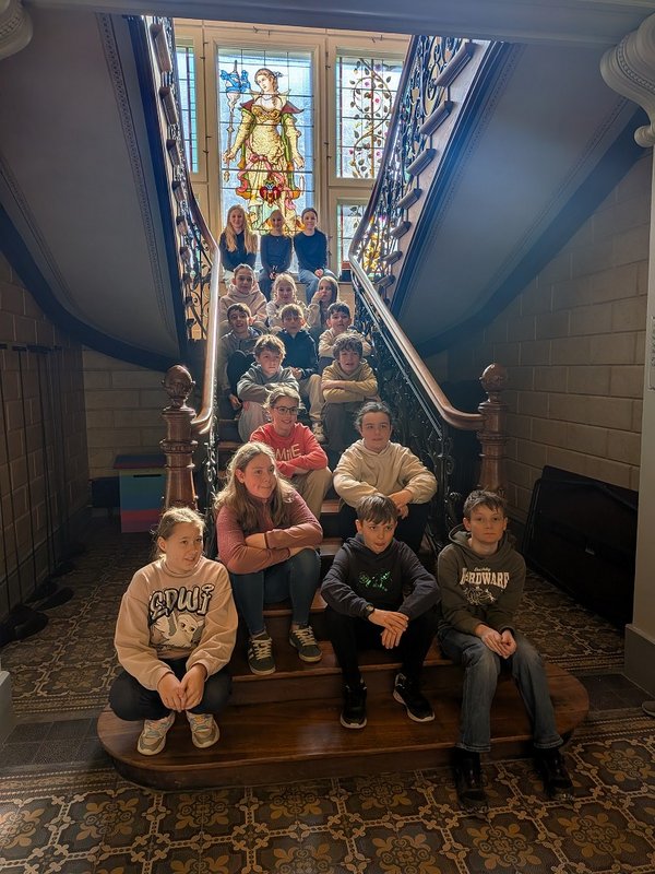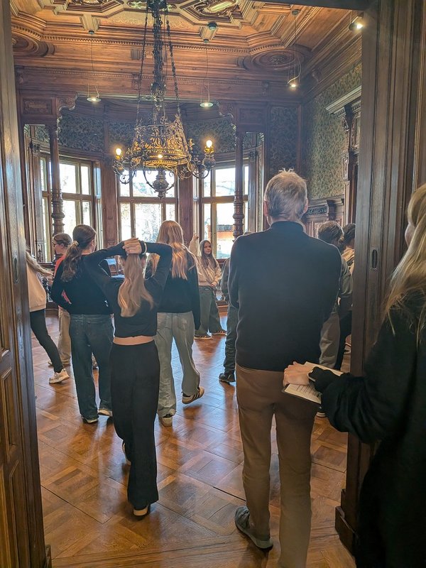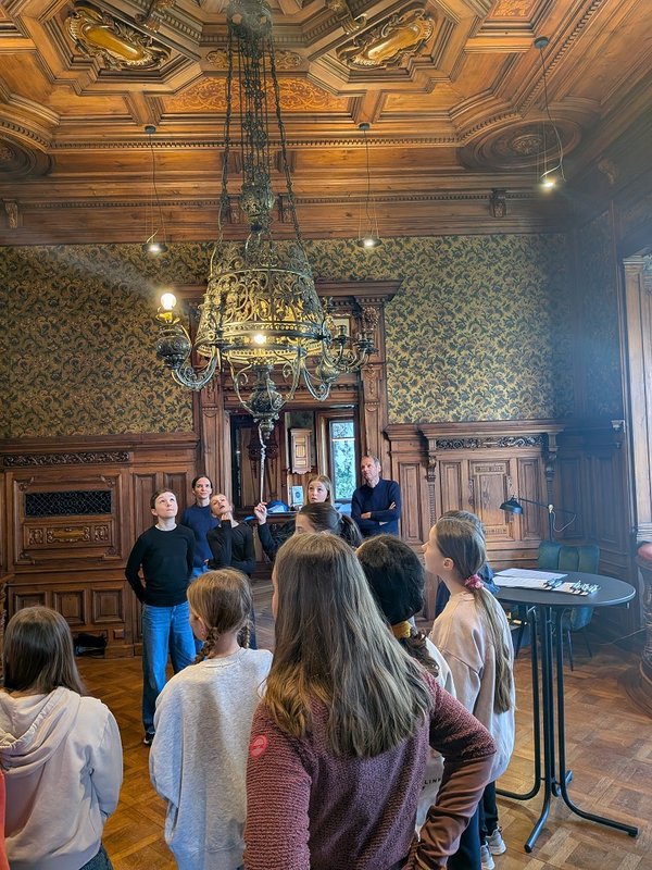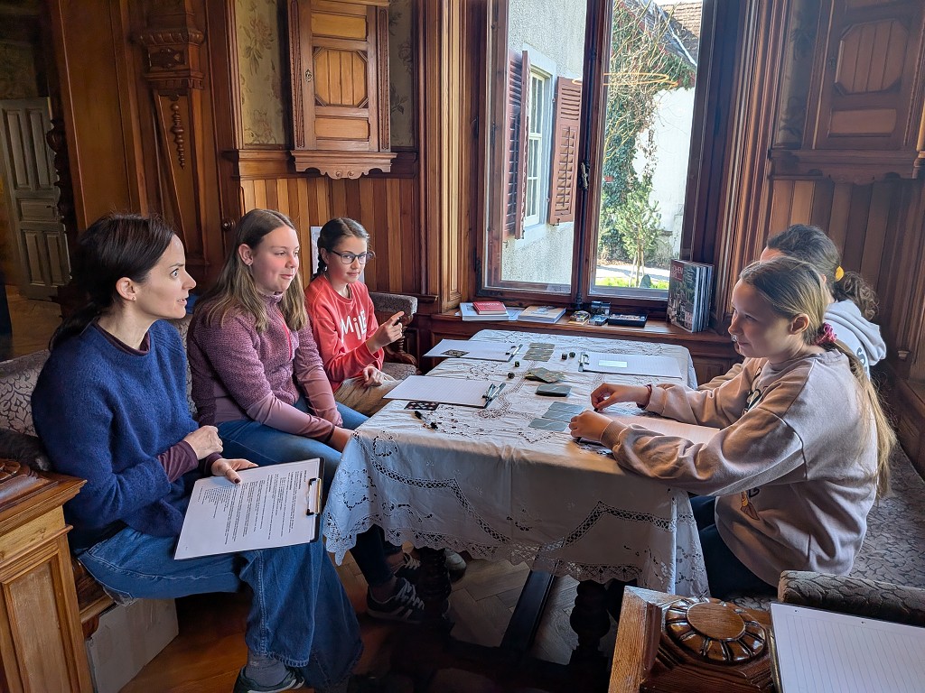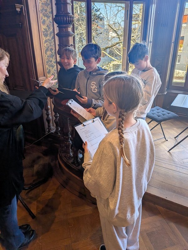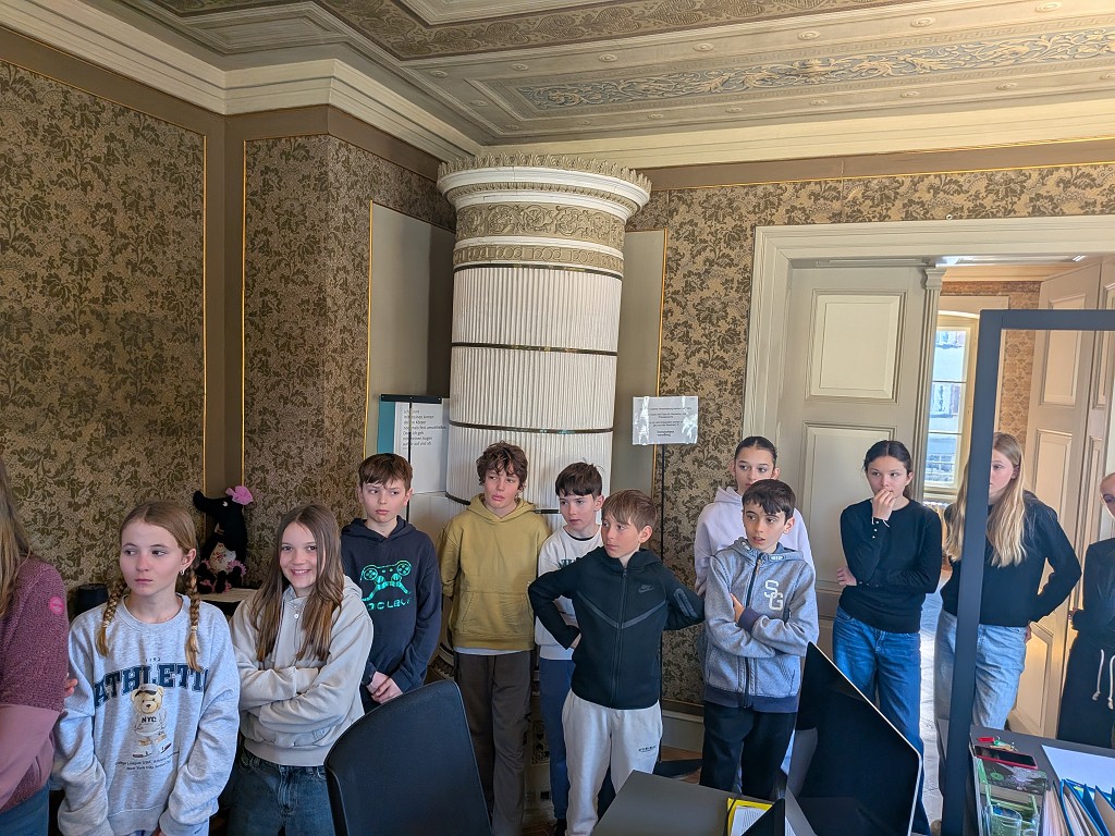 Dann wurden wir ins Esszimmer „geleitet“. Zuerst erkannten wir nicht, dass es das Esszimmer war, bis wir die Gemälde über den Türen entdeckten, auf denen Speisen abgebildet waren. Wir wurden dann noch durch den ersten Stock geführt und wir durften sogar in den Gang, den früher immer die Angestellten benutzten. Wir spielten noch ein lustiges Spiel und uns wurden die Stationen erklärt, die wir nun erledigen konnten.
