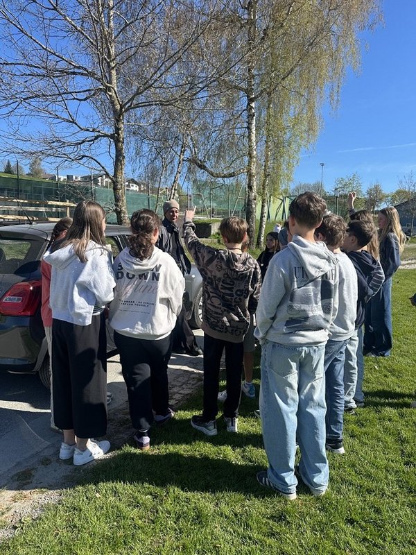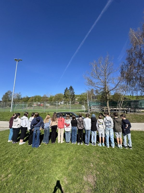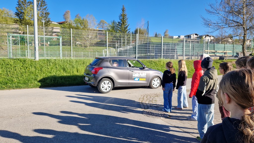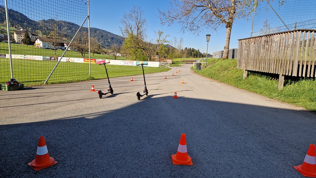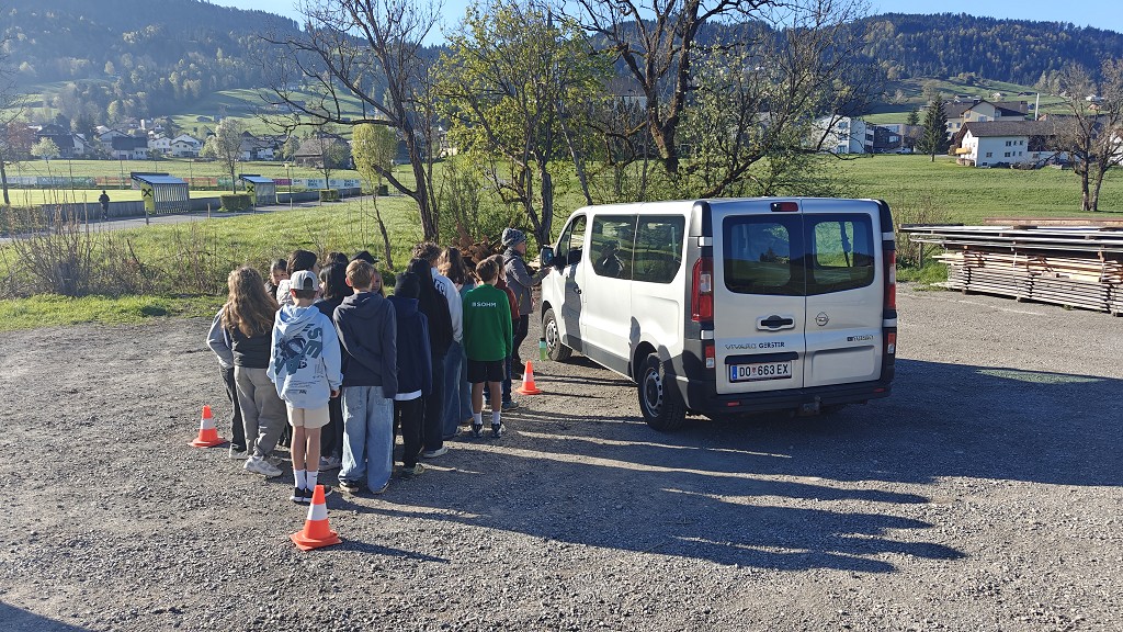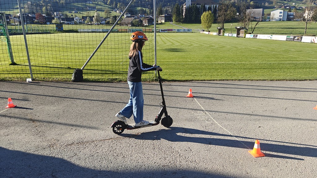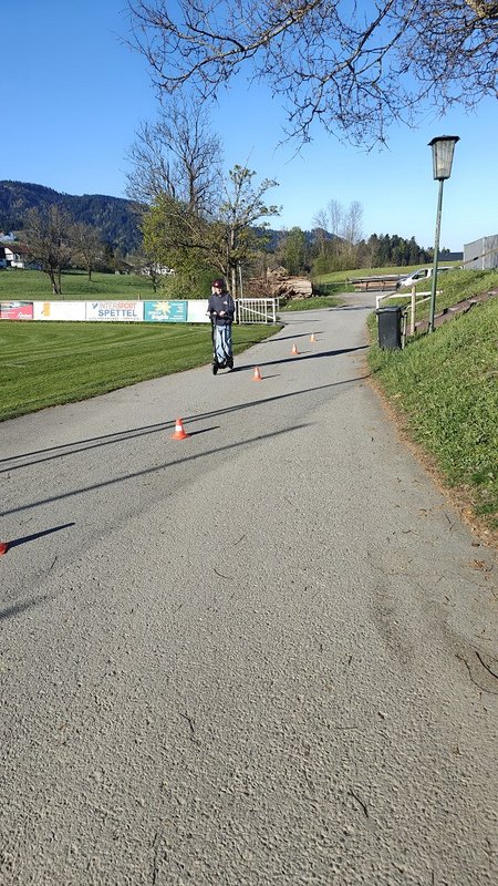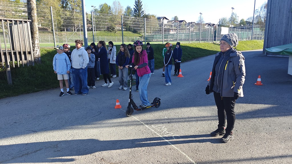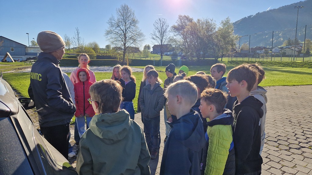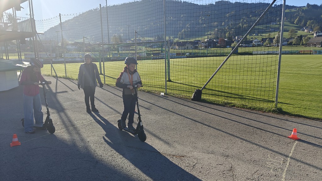 Am 23. April 2026 stand der Vormittag für die 1. und 2. Klassen ganz im Zeichen der Verkehrssicherheit. Am Sportplatz Alberschwende lernten die SchülerInnen, in je zwei Unterrichtsstunden, den sicheren Umgang mit dem E‑Scooter, erfuhren hautnah, welche Gefahren der tote Winkel birgt, und erlebten eindrucksvoll das Trägheitsgesetz bereits bei „nur“ 10 km/h. Besonders prägend war das praktische Erfahren des Anhaltewegs, das bei vielen einen bleibenden Eindruck hinterließ.