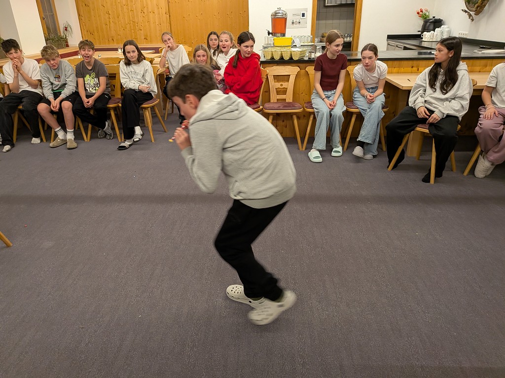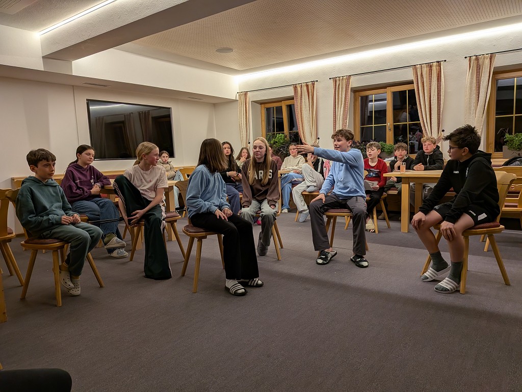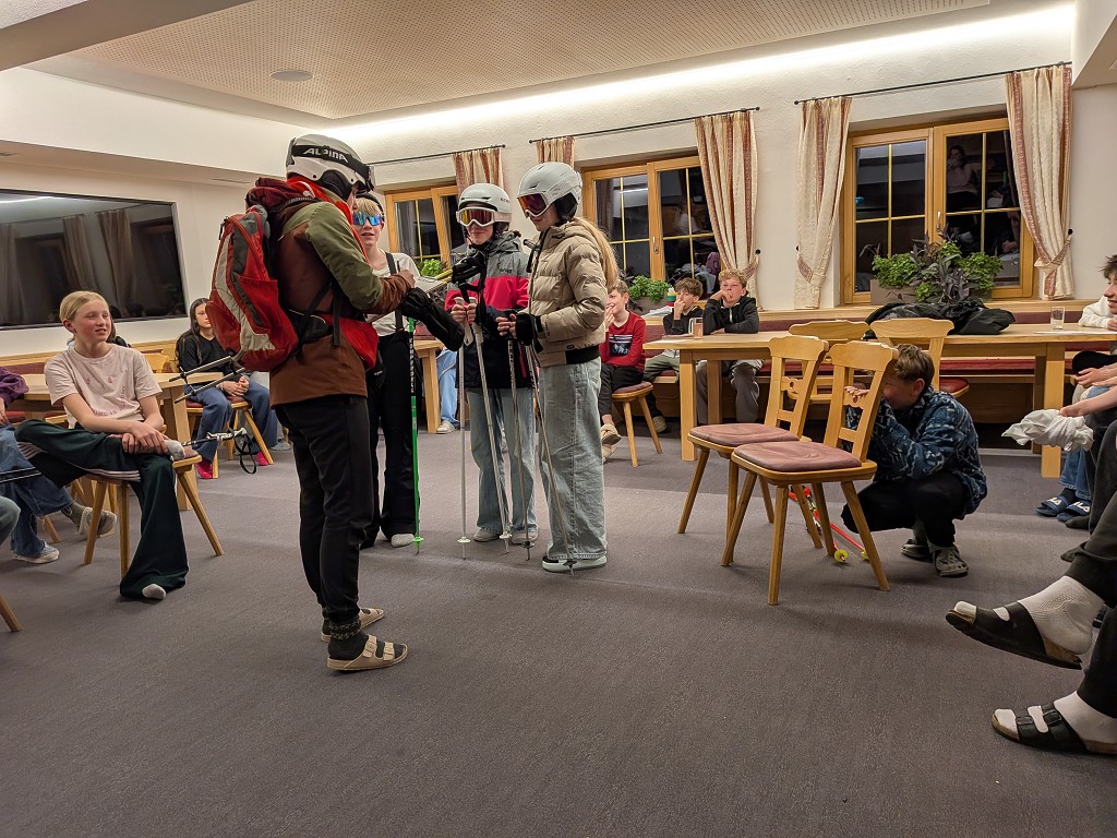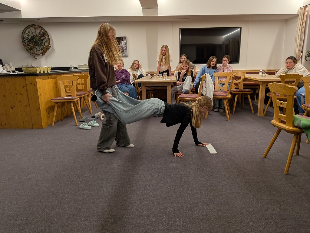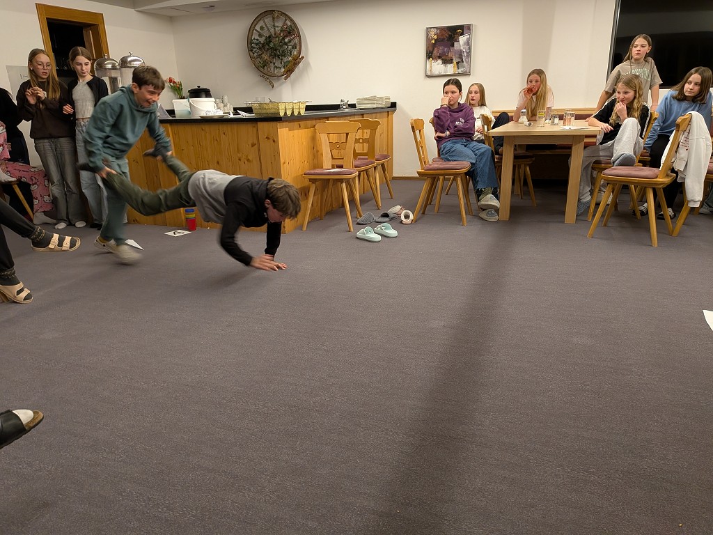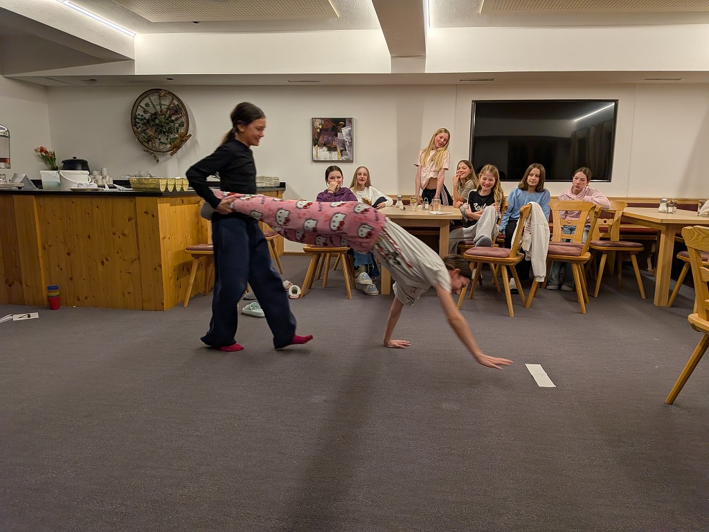 Ein besonderes Highlight war der Discoabend und das Fahren mit den “Shortcavern“. Glücklicherweise gab es keine gröberen Stürze oder Gipsarme. Am Montag fand der Spieleabend statt. Den Dienstagabend durften wir gestalten. Die a Klasse hatte sich einen sehr interessanten Programmpunkt ausgedacht und auch die b Klässler organisierten tolle Minispiele.