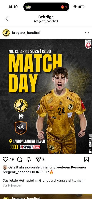 Im Rahmen des Sportmoduls hatten unsere SchülerInnen die Gelegenheit, ein Profihandballspiel der HLA Meisterliga live mitzuerleben. Beim spannenden Duell Bregenz Handball gegen den HSG Graz ging es um nichts Geringeres als den Abstieg abzuwehren. In einem schnellen und intensiven Spiel behielt Bregenz die Nerven und konnte sich mit dem Endstand 37:28 letztlich vor dem Abstieg retten.