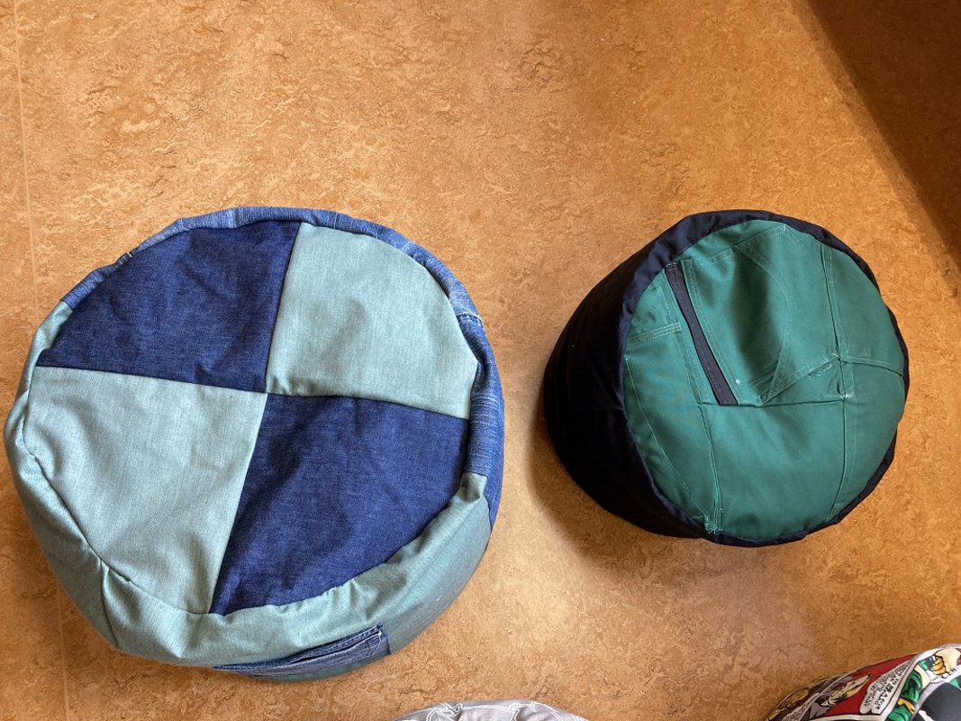 Eine Herausforderung war es, die passenden Stoffe zu finden, diese zuzuschneiden und die Teile richtig zusammenzunähen. Kniffelig gestaltete sich das Einnähen des Reißverschlusses. Mit gegenseitiger Beratung, mit Konzentration und Motivation konnten wir den Sitzpouf nähen. Nach vielen abgebrochenen Maschinennadeln haben wir alle unser Ziel erreicht. Jeder von uns hat nun ein individuell gestalteter Sitzpouf an einem gemütlichen Platz zu Hause.