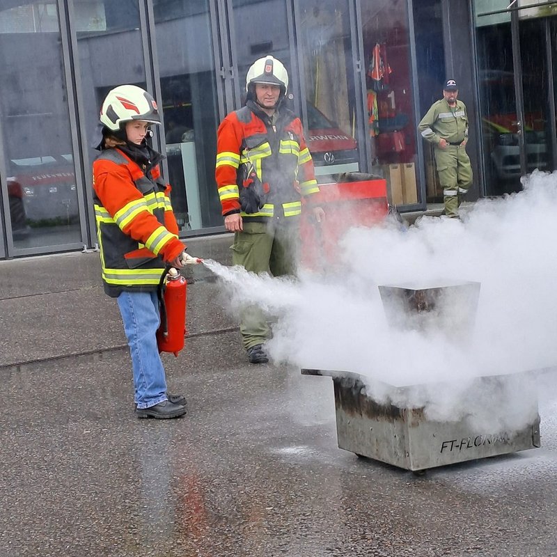 Alfons Bereuter und sein Team zeigten unseren Schüler:innen, wie Feuerlöscher funktionieren. Sie durften dann das Gelernte gleich umsetzen und lodernde Flammen löschen. Außerdem wurden einige Mädchen und Buben vom Feuerwehrturm abgeseilt, was ihnen großen Spaß machte.