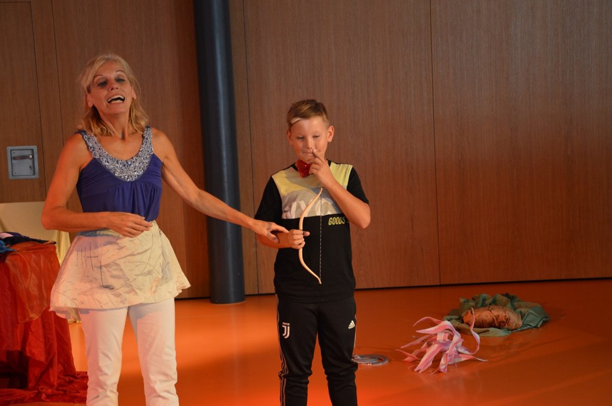 Groß war die Begeisterung und das Gelächter als viele Schülerinnen und Schüler unter der temperamentvollen und charmanten Anleitung der Schauspielerin und Tänzerin Sabine die abenteuerlichen Geschichten spielten, begleitet am Klavier mit stimmig dazu passender klassischer Musik von Jaques Offenbach!