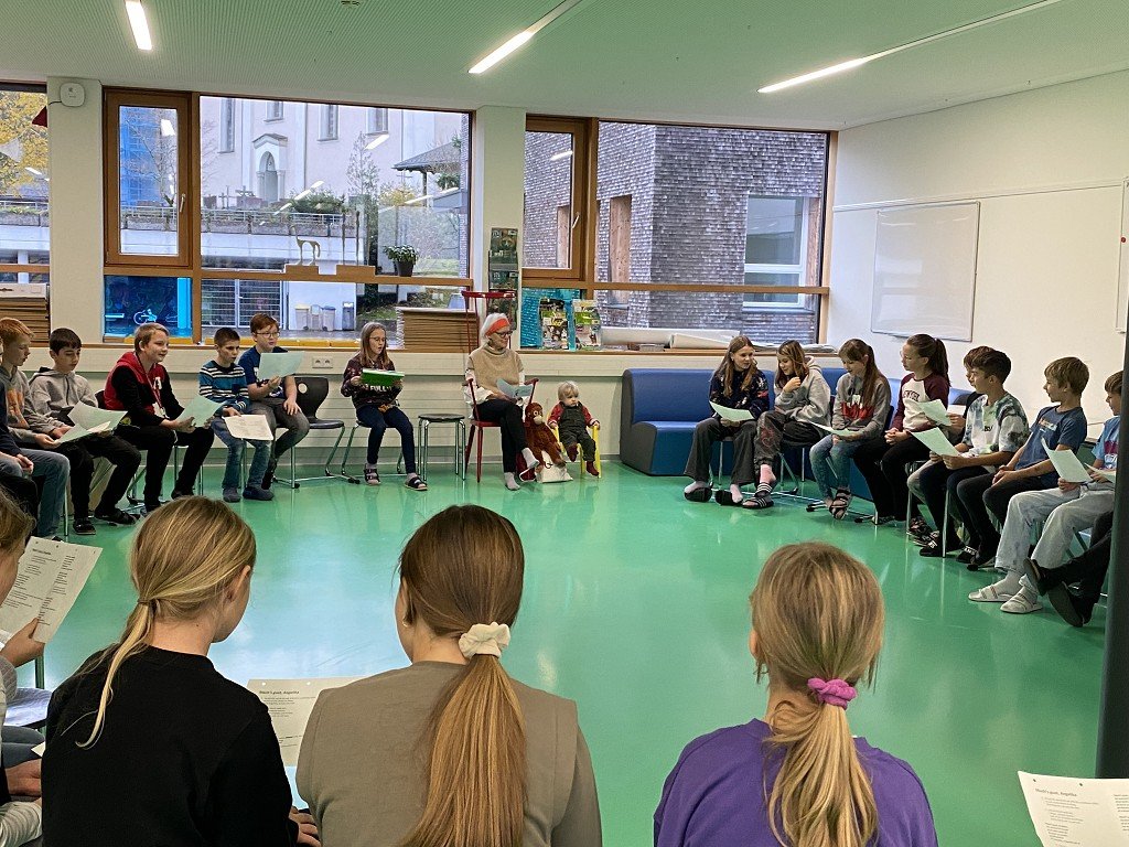 Dienstagvormittag, den 14.11.23 um 11 Uhr, kam die Bürgermeisterin zu den ersten Klassen in die Lernlandschaft. Ihre Enkelin Nikita und deren Kuscheltier, der Affe Coco, waren auch dabei. Wir sangen für sie ein Lied. Danach durften wir ihr noch Fragen sowohl zu ihrem Bürgermeisterinnenleben als auch zu ihrer Pension stellen. Fragen, die wir gestellt haben: