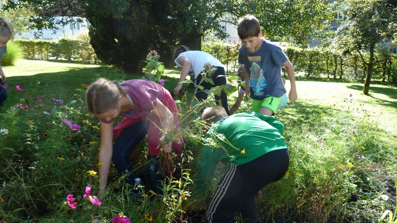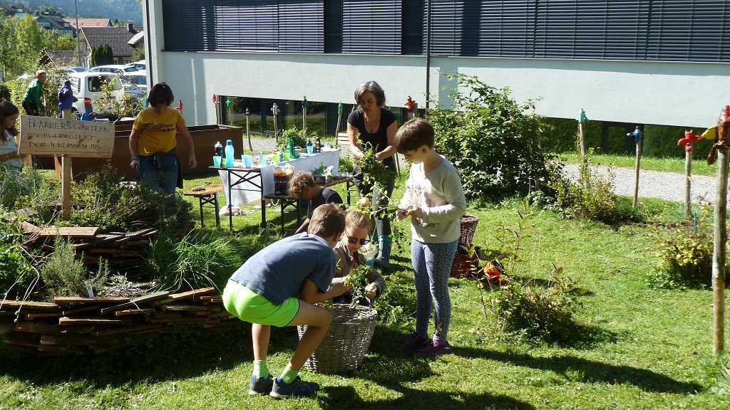 Auch die Mittelschule Alberschwende öffnete ihren Schulgarten für dieses Fest. Die SchülerInnen der 1a und 1b Klasse zeigten, was in so einem Schulgarten zu tun ist und was geerntet werden kann. Es war ein Riesenspaß die Kartoffeln auszugraben, die Krautköpfe zu ernten, die Blumenwiese zu pflegen und die Kräuter zu binden.