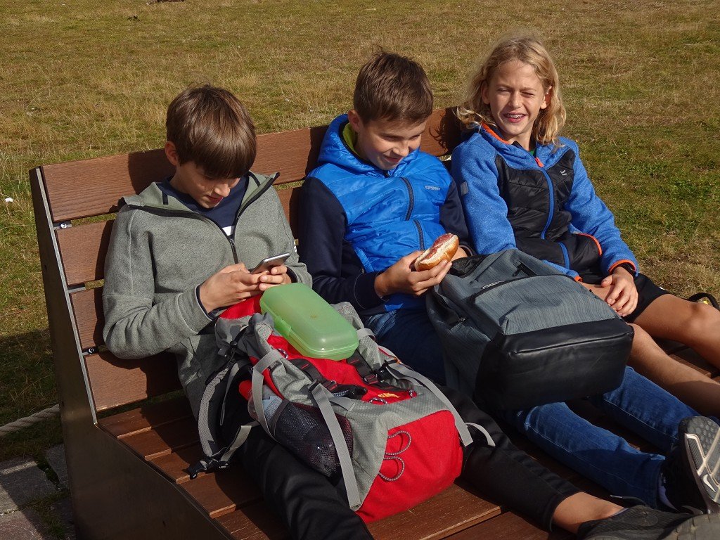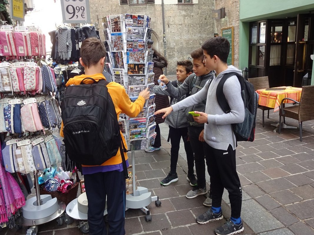 Wir trafen uns in den frühen Morgenstunden (Abfahrt 6:00 Uhr!). Nach einer dreistündigen Fahrt mit 3 x Umsteigen (Schienenersatzverkehr) trafen wir in Innsbruck ein. Zuerst machten wir einen morgendlichen Spaziergang, bei dem wir unseren Mitschüler/innen die Sehenswürdigkeiten wie Triumphbogen, Freiheits- und Pogromdenkmal oder die Annasäule erklärten. Anschließend stand die Stadtrallye mit dem Handy auf dem Programm, was sehr viel Spaß machte. Dann besichtigten wir das prunkvolle Grab von Kaiser Maximilian (das leer ist!) – und marschierten zur Talstation der Hungerburgbahn. Nach 3 Sektionen standen wir ganz oben auf dem Hafelekar auf ungefähr 2 300 m und spürten hautnah, was ein Föhnsturm ist. Manche spürten schon leichte Kopfschmerzen! Nun hatten wir aber einen riesigen Hunger, den stillten wir auf der Seegrube mit herrlicher Sicht auf Innsbruck. Jetzt ging es weiter mit dem Sightseeing durch Innsbruck zur Berg-Isel-Schanze. Wir betrachteten mit Interesse den Sprungturm, den Schanzentisch, den Auslauf und die Stelle für das olympische Feuer. Zu Fuß ging es wieder in die Stadt, ein Bus brachte uns zum Bahnhof – und im Railjet ging es dann ohne Unterbrechung nach Dornbirn, und von dort nach Hause. Es war ein toller, aber auch sehr anstrengender Tag in Innsbruck.